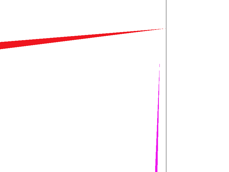 Finally, we reduced the amount of pixels checked with a simple trick. We know that all pixels within the triangle in any given row of the bounding box must be consecutive. Any pixels after the end of the triangle in a particular row are guaranteed to be outside as well, so we can cut the loop for each row short.