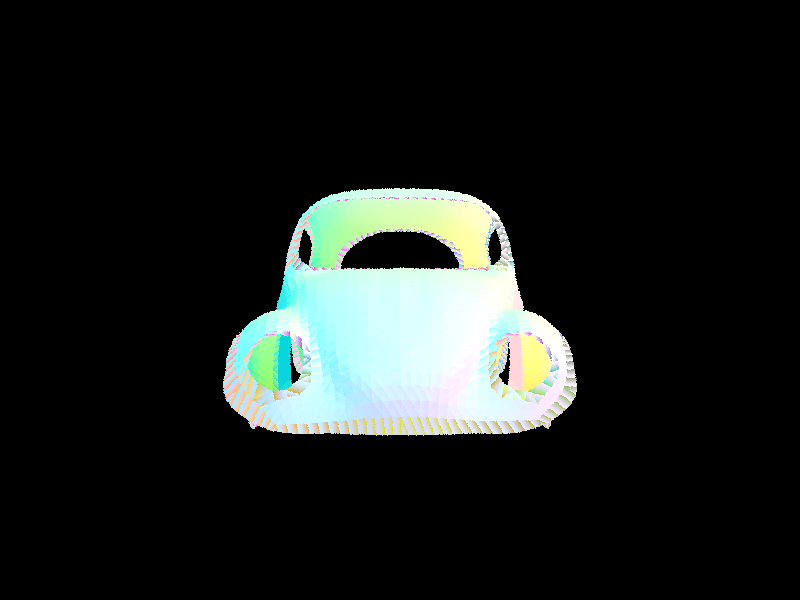 The triangle intersection algorithm we implemented was the Möller-Trumbore intersection algorithm. This algorithm uses the points of a triangle to calculate edges, and uses those edges along with the ray origin and direction to calculate the time t at which it intersects, as well as the barycentric coordinates at which it does.