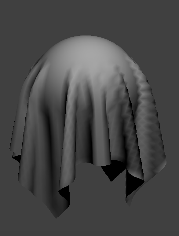Again, density has the opposite effect as spring constant. High density makes the cloth less stiff, so it folds more readily and at a stranger angle, while low density looks mostly the same as default.