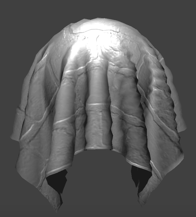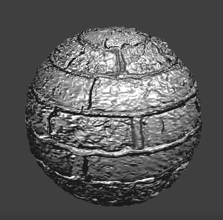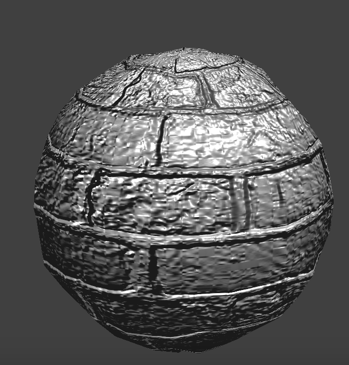 Unlike bump mapping, displacement mapping actually changes the locations of the vertices. We've cranked up the height suuuper high so you can see. With coarsely defined points, displacement mapping can cause the surface to look a lot more jagged than it should be. On the other hand, if there are enough points, displacement mapping could perhaps a little bit more realistic since it's actually bumpy rather than just creating the illusion of bumpiness by modifying normals.
